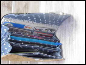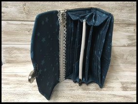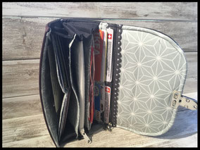 Es hat zwei Reissverschlüsse, platz für 12 Karten (oder mehr)