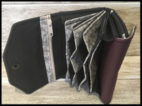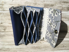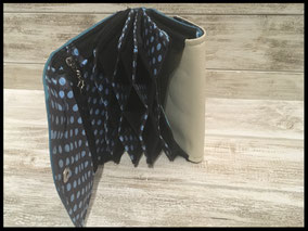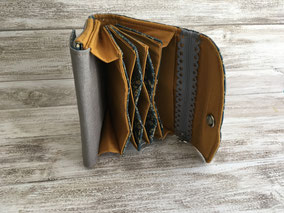 Stoff: Baumwolle, Wachstuch, Leder oder Korkstoff.